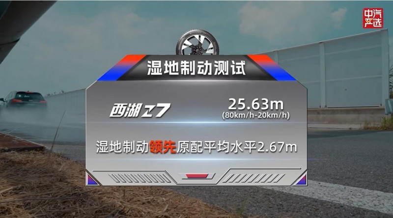湿地制动性能是衡量轮胎安全性的关键指标。在雨天湿滑路面上,优异的轮胎能缩短刹车距离,为驾驶者争取宝贵的反应时间,最大限度避免事故发生。测试中,车辆装配不同轮胎,在积水的路面上进行从80公里/小时紧急制动至20km/h的挑战。