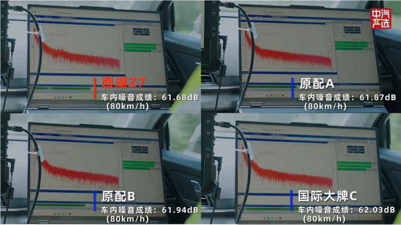 在这一轮测试中,西湖轮胎Z7以61.68dB的低噪音表现脱颖而出,显著优于原配轮胎A(61.87dB)、原配轮胎B(61.94dB)和国际大牌轮胎C(62.03dB)。测试中的分贝差,在实际驾乘中都会转化为更为宁静、惬意的车内环境,有效减轻长途驾驶的疲劳感,彰显了西湖Z7在舒适性调校上的深厚功力。