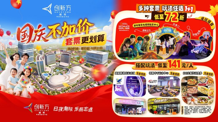 今年国庆,来横琴创新方,体验乐园探险、运动狂欢、美食之旅。早鸟票和套票数量有限,售完即止,快提前囤票,带上家人朋友,开启一个充实、实惠又不累的国庆假期吧。