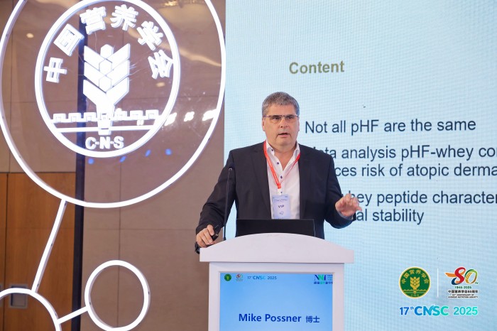 蛋白质水解工艺的精准程度是当前部分水解配方领域的技术制高点。本次研讨会,雀巢欧洲区医学总监Mike Possner从机制层面深入阐释了部分水解蛋白配方的原理:通过精准控制水解过程,在降低致敏性的同时保留免疫调节活性,模拟母乳的耐受诱导机制。