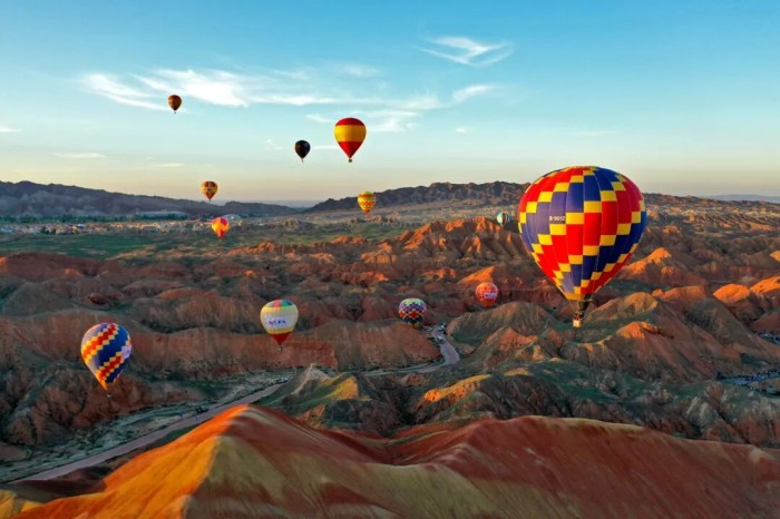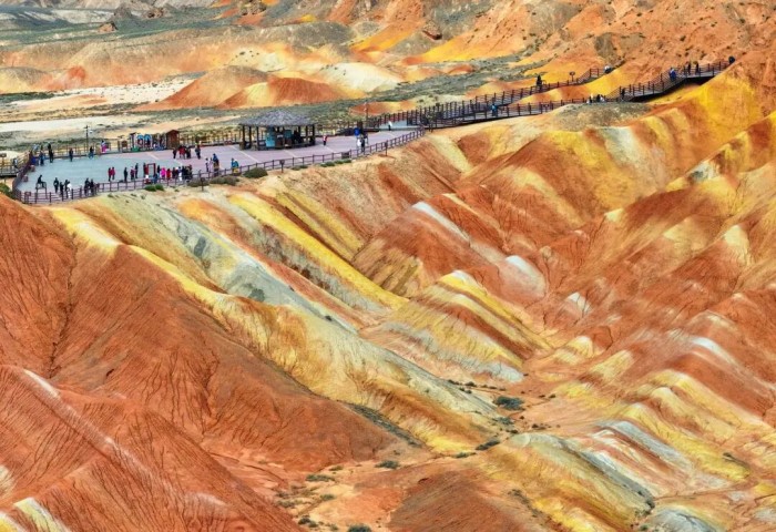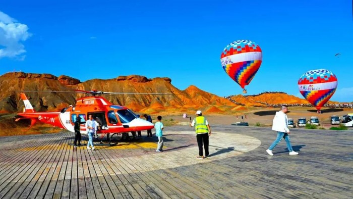 作为张掖文旅产业的“龙头”,七彩丹霞景区今年以丰富产品供给为核心,加大营销服务体系建设和客源地市场拓展力度,着力优化服务运营模式,不断完善旅游产品供给体系,持续激活旅游发展新动能。在原有旅游产品的基础上,创新推出舒享游、尊享游等定制化线路,同步打造“行知七彩丹霞·探秘地球印记”暑期研学游、全地形越野车体验、西域风情旅拍、千人绘丹霞等特色项目,让自然景观与深度体验相互融合。游客体验感极好,反响热烈,其中中国彩虹山、东方的卡帕多奇亚、低空旅游目的地等话题的热度上升,景区知名度和美誉度节节攀高。直升机、热气球等低空游览项目更成为网红打卡点,杭州游客聂之翔坦言,“从空中俯瞰丹霞的瑰丽,和地面体验完全不同,人生值得一试。”