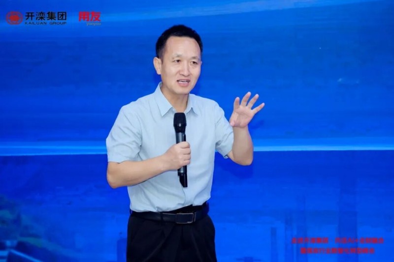 用友网络高级副总裁、高端BG总裁杜宇发表致辞。他首先向开滦集团长期以来的信任与支持表示感谢!开滦集团作为中国近代工业的“活化石”,如今以坚定的数智化战略,走出了一条从“百年基业”到“数智新生”的转型之路,这份敢于自我革新的勇气令人深感敬佩。
