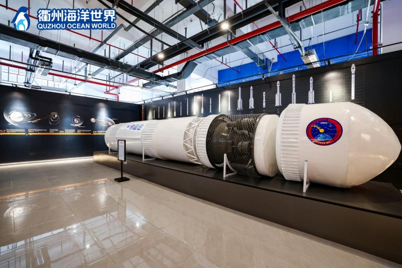 衢州海洋世界作为海洋航天航空科普教育基地,在四楼还设置了航天航空馆。穿越时空长廊,见证航天发展历程,航空航天城以"星辰探索·科学启航"为核心理念,依托五大主题航天展厅,深度融合科普教育、实践体验与社会服务,致力于构建"科技-教育-文化"三位一体综合性生态平台,打造沉浸式航天科技文化体验空间。这也是全国首家将海洋与航天航空相结合的科普馆。