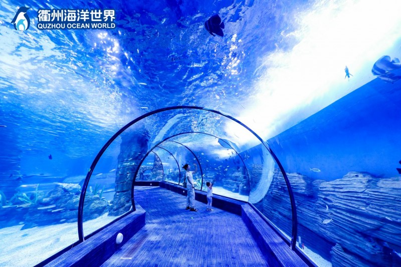 如今,来自冰海极地、温带、热带的百余种、万余尾海洋生物,已经在衢州海洋世界构建成微型海洋生态系统。镇馆之宝“南极绅士”巴布亚企鹅、“微笑天使”魔鬼鱼、“尼莫”原型公子小丑鱼、“活化石”巨骨舌鱼、“动物界万人迷”卡皮巴拉、“喜剧大师”海狮等在此汇聚。在百米沉浸式海底隧道,可以近距离观赏“魔鬼鱼”、黄金鲹、燕子鳐、点篮子鱼等鱼群遨游;在一楼美人鱼剧场,伴随着悠扬旋律,人鱼公主化身深海精灵,身着流光鱼尾裙与鱼群共舞,编织梦幻童话,鱼饵倾洒瞬间,千鱼如银绸翻腾,聚成绚烂狂潮,展现海底生命的活力;四楼的海狮剧场,海狮化身“喜剧大师”,为现场观众带来顶球、接圈、拍手三连击,各种拿手好戏轮番上阵,引爆全场欢乐。