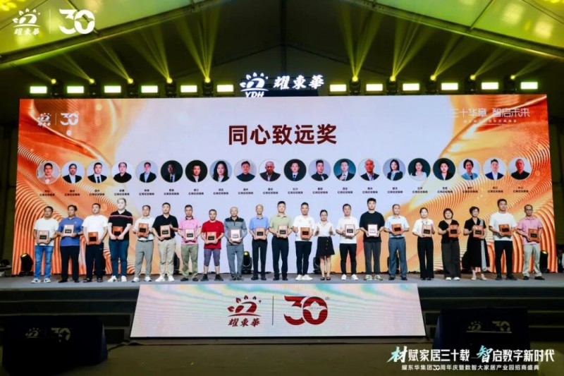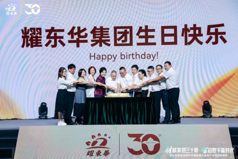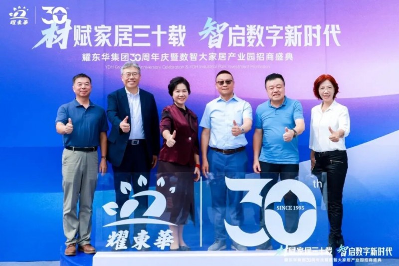 2025年9月28日,耀东华集团迎来创立三十周年的重要时刻。在耀东华科技产业园内,一场以“材赋家居三十载,智启数字新时代”为主题的庆典举行。500余位嘉宾齐聚一堂,行业协会领导、海内外合作伙伴代表、高校产学研专家、全球供应链代表以及社会各界朋友,共同见证这一里程碑式的荣耀时刻。