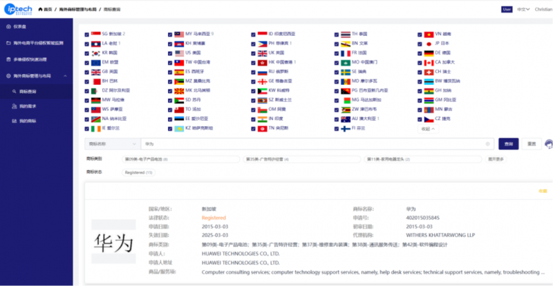全球权利信息查询:接入多个国家商标专利数据库,一键检索全球知识产权状态。
