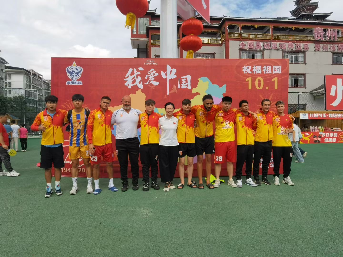 绿茵为媒连山海,“村超”赛事绽光芒。10月1日-2日,应贵州“村超”组委会之邀,西班牙HLk足球俱乐部成年队赴中国榕江参加国庆专场友谊赛。期间,这支由多国球员临时组建的球队在历经30小时长途跋涉后,以饱满的热情投入比赛,先后与中兴努比亚越南队、茅台集团青年足球队展开较量。这场跨越欧亚大陆的友谊赛不仅为国庆佳节增添色彩,更是超越体育竞技本身,成为“一带一路”民心相通的最佳主角,球员们通过足球这一世界性的语言,向全世界宣传中国,在增进中外友谊的同时书写着文明互鉴的新篇章。
