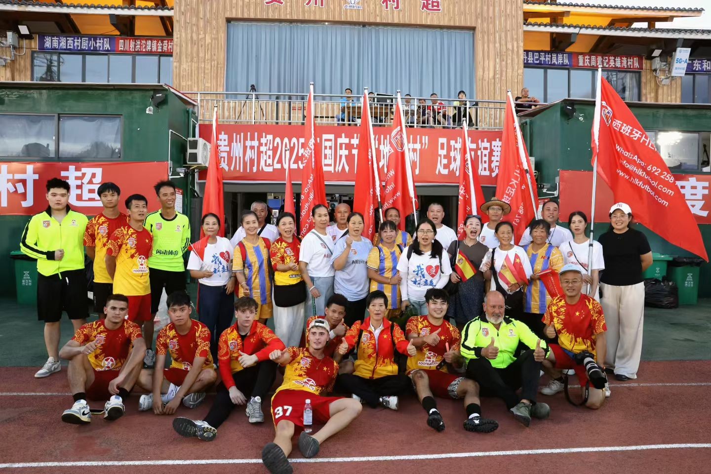 足球无国界,这场充满激情和温情的赛事最终成行,无数人为之付出了努力。据悉,因签证问题,西班牙HLk足球俱乐部球队半数主力缺席,但他们仍坚持派出12名球员赴约。球队主席叶伟梅在8月考察“村超”时就被这里全民足球的热情所震撼,此后在短短10天便完成组队。西班牙HLk足球俱乐部球队9月29日在西班牙巴塞罗那集结出发至深圳,再从深圳转机至贵阳共历经25小时飞行,然后又从贵阳乘坐5小时大巴车到榕江。西班牙HLk足球俱乐部球队到当地酒店已是半夜2:00,但他们依然以全部的热情投入训练和赛事,在比赛中展现出了良好的竞技状态和团队精神。在比赛间隙,西班牙球员与当地村民共同练习颠球、分享战术的场景,更是成为最动人的画面。正如西班牙HLk足球俱乐部球队教练所言:输赢不重要,重要的是参与,要让世界看到中国“村超”的精彩,看到中国乡村的活力。