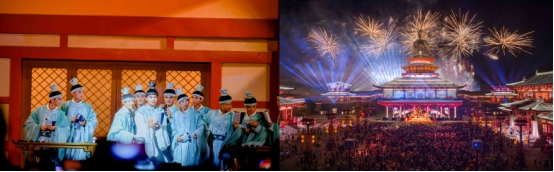 双节期间,备受瞩目的《状元归来》——全国首个状元文化全景沉浸秀搭配百万级烟火演出重磅加场。10月2日至6日,《状元归来》每日18:00与20:00各上演一场,20:40准时绽放璀璨烟花。12000㎡的宏大演出区域、2000㎡的主舞台,结合48米巨幕与威亚升降矩阵,完美还原灯火辉煌的曲江夜宴,呈现飞檐走壁的武侠奇观。游客置身于状元城的琉璃宫阙,仿佛穿越回盛唐,跟随现代少女的脚步,与状元、皇帝、金吾卫一同经历传奇故事,还能主导剧情发展,穿梭姑苏街市、参与票选花魁、展开金殿辩论、与使节斗智斗勇,在古今碰撞中,亲身感受金榜题名的荣耀时刻。