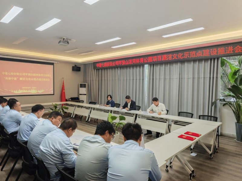 10月14日,中建七局安装公司市政分公司平顶山湛河体育公园项目成功召开创建“尚廉中建”廉洁文化示范点推进会。市政分公司党委副书记、纪委书记、执行总经理蒋贵华出席会议并讲话,项目班子成员及各部门管理人员参会。