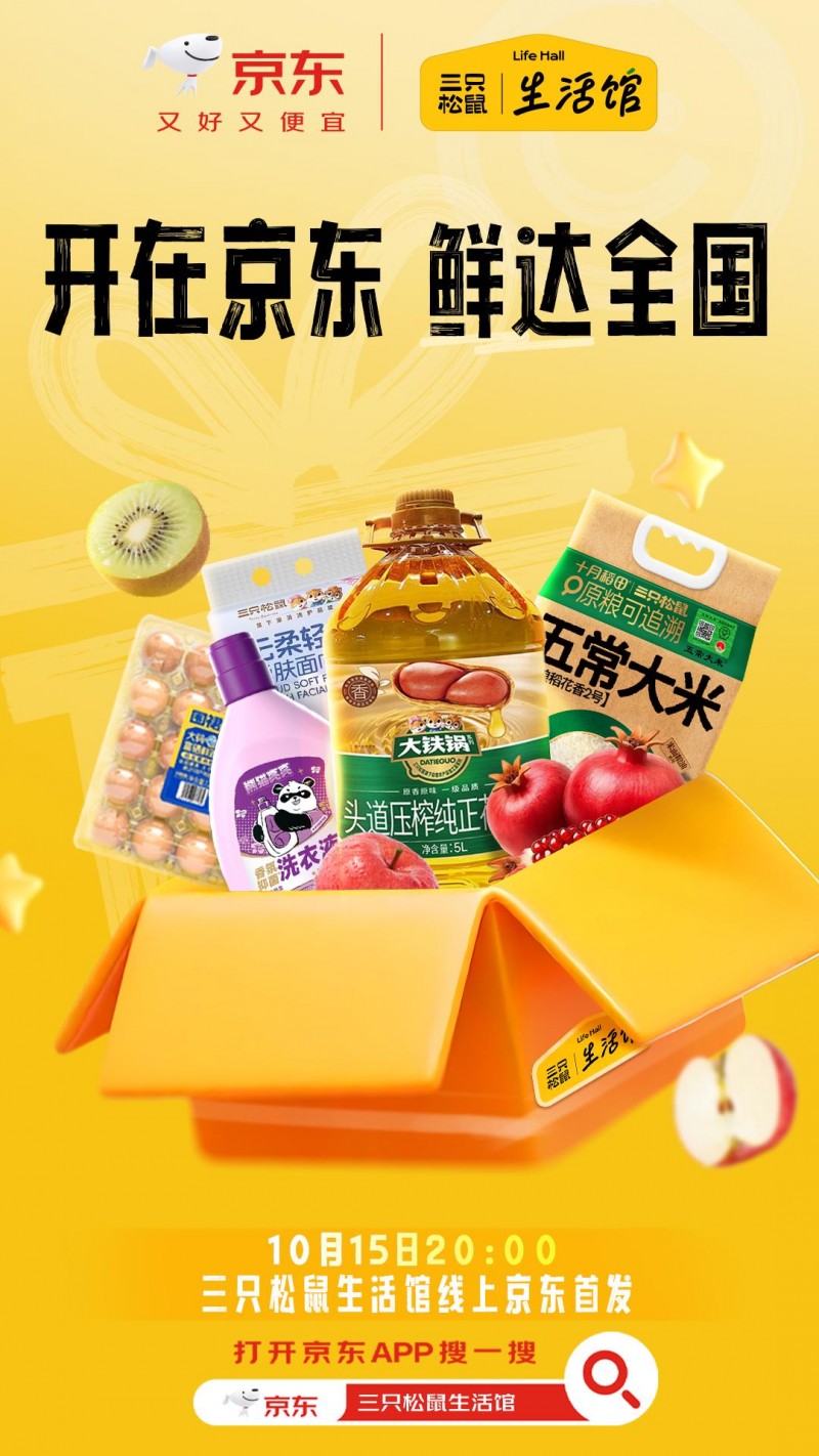 10月15日,三只松鼠生活馆与京东达成战略合作,其线上首店于京东平台正式首发。标志着三只松鼠生活馆正式从线下场景延伸至线上核心渠道,迈入“全渠道”布局新阶段。依托京东强大的流量优势、高效的物流体系与庞大的用户基础,三只松鼠生活馆为全国消费者构建全新的家庭全场景,品质生活“一站购”的新消费入口。