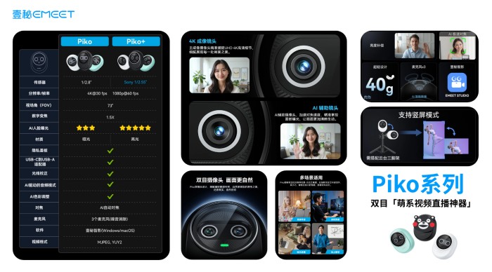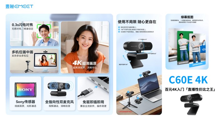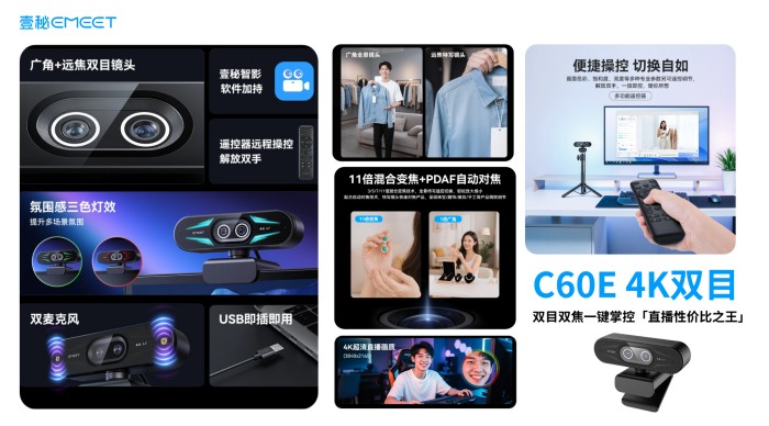 全民直播时代,一台优质的摄像头已成为内容创作者的“硬通货”。据行业数据统计,2024年中国网络直播用户规模达8.33亿人,无论是职场人的远程会议,还是内容创作者的直播带货,画质与体验直接决定了专业度。这个双十一,如何精准选择一款适合自己的摄像头?国内AI影像领先品牌EMEET壹秘,以覆盖多场景的4K超清摄像头产品矩阵,为不同需求的用户提供了从入门到专业的直播设备方案。