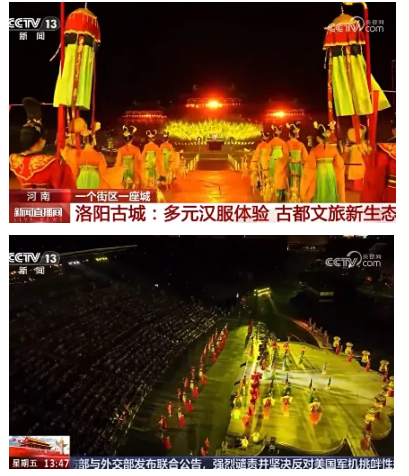 10月3日,中央广播电视总台《新闻直播间》《一个街区一座城丨洛阳古城:多元汉服体验古都文旅新生态》节目中,《凤舞神都》实景演出精彩亮相。