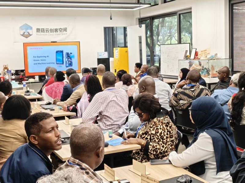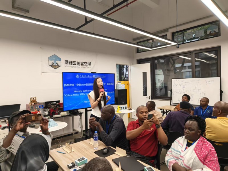 2025年10月17日下午,由教育部国际合作与交流司、教育部教师工作司、上海市教育委员会指导,联合国教科文组织教师教育中心、上海师范大学主办的“2025年中非STEM教育教师培训合作计划”专题培训之“AI Empowering STEM Teacher Education”在蘑菇云创客空间顺利开展。来自坦桑尼亚、加纳、南非、肯尼亚、埃塞俄比亚、乌干达、卢旺达、赞比亚、尼日利亚、马拉维、科特迪瓦的非洲11个国家近60位STEM领域的非洲国家教育官员、教师教育者、专家学者及中小学教师齐聚一堂,沉浸式解锁了以“行空板K10”为核心的AI教学实践新路径。