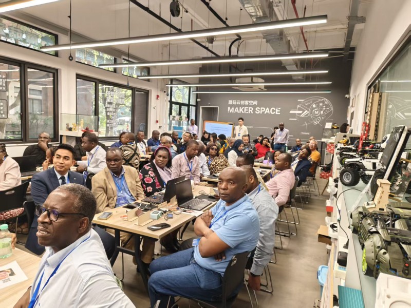 作为接待与技术支持方,上海智位机器人股份有限公司(DFRobot)旗下的蘑菇云创客空间,自2013年成立以来已获多项权威认证——科技部首批“国家级众创空间”“上海市学生(青少年)科创教育基地”“上海市青少年创新实验室”“上海市中小学人工智能教育基地”,此次凭借专业的教学场景与技术资源,为非洲学员打造了“从技术认知到实操落地”的全流程交流平台。