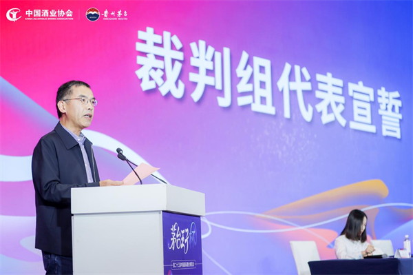 中国酒业协会副秘书长兼白酒分会秘书长甘权、贵州茅台酱香酒营销有限公司党委副书记及总经理陈宗强、湖北省酒业协会秘书长程志勇、中国白酒首席品酒师代春等领导和嘉宾出席开幕式。开幕式由中国酒业协会白酒分会袁晔主持,现场流程庄重有序:甘权与陈宗强分别代表主承办方发表致辞,程志勇、贵州赛区王艺珂同学分别作为裁判组代表和参赛选手庄严宣誓。