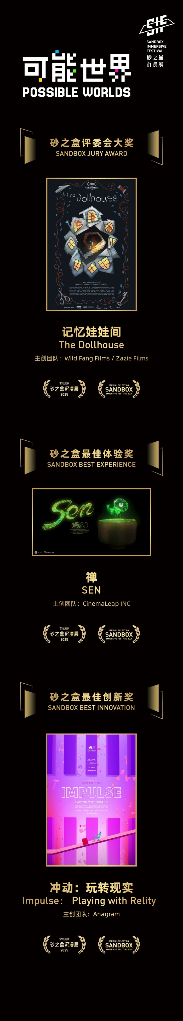 在今天的「砂之盒颁奖礼」环节,2025砂之盒沉浸展的竞赛单元评选结果最终揭晓。