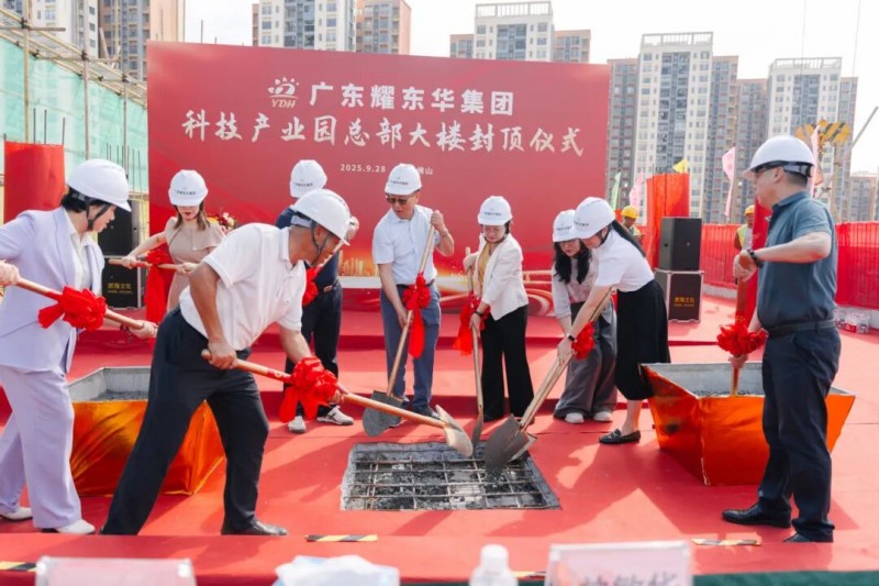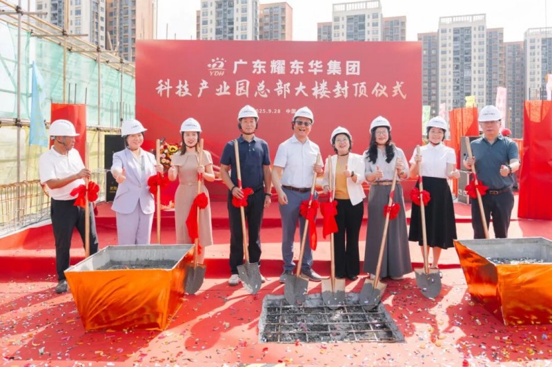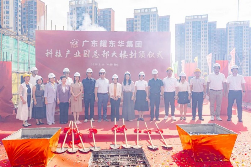 2025年9月28日上午,耀东华科技产业园内彩旗飘扬、礼炮齐鸣,广东耀东华集团科技产业园总部大楼封顶仪式在此举行。这一里程碑时刻,标志着耀东华集团迈向“数智转型、产业集聚”的新阶段,也为企业成立30周年献上了一份厚礼。本次封顶仪式吸引了众多政府领导与行业嘉宾亲临现场,现场气氛热烈非凡。