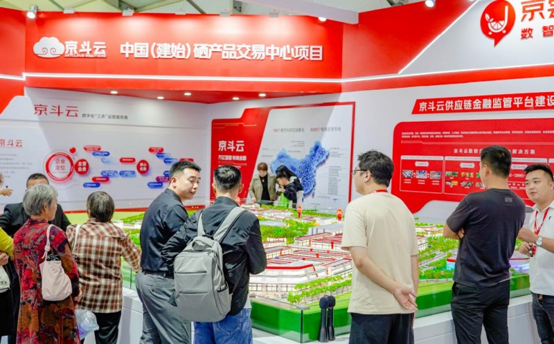 巡馆期间,湖北省副省长及恩施州领导一行专程到访展馆,由京斗云集团董事长接待,并简要介绍京斗云在全国的布局及京斗云中国(建始)硒产品交易中心概况。当前在湖北建始县建设中的中国(建始)硒产品交易中心项目,占地约1016亩,是京斗云万亿蓝图的重要组成部分。项目规划建设七大功能板块,包括:京东物流供应链(恩施)产业基地、会展中心、硒健康食品交易博览中心、智慧冷链物流中心、硒产品深加工产业园区、净菜加工中心及智慧农贸市集。