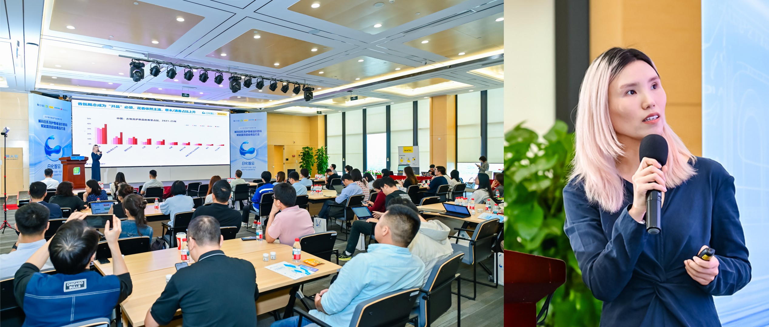 紧接着,由上海高砂日化研究中心/日化评香部部长-陈华根据市场分析结合技术的应用,推荐了和智云鲸造联合优选出的三个趋势香型,讲解、测评其中的香气表现特征、应用品类范围和匹配的香精技术。