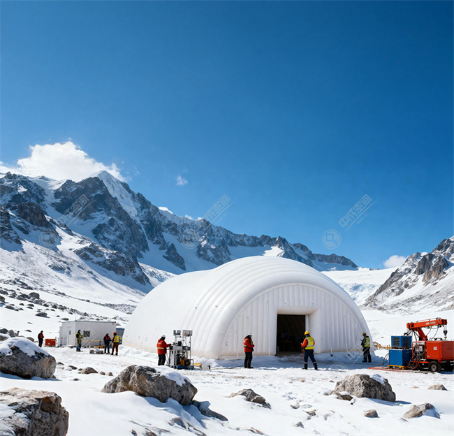 中成空间大跨度可移动式气肋气膜仓,专为高寒高海拔地区工程建设量身定制,可应用于水电站坝体填筑、骨料加工系统、大型设备材料存储等关键环节,有效解决高海拔地区工程施工防风、防雨及冬季保温难题,既筑牢工程质量防线,又大幅提升工程效率。