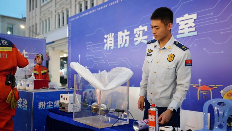 小粉尘为何引发大爆炸?民房发生火灾后浓烟如何流动?静电也会引发火灾吗?一系列实验装置向好奇的群众解答了火灾背后蕴含的科学原理。