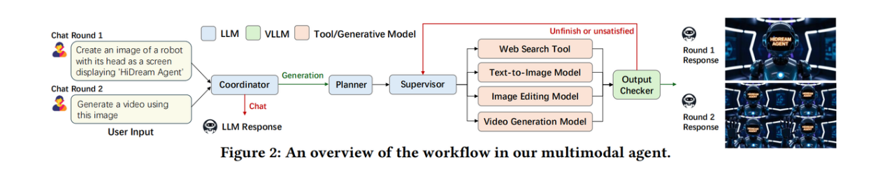 该智能体开创了可及性、交互式视觉叙事和多模态生成AI中协作内容创作的新方式,通过将生成和编辑融合于一个对话驱动的体验中,降低了高质量视觉内容创作的门槛,并显著缩短了迭代周期,实现从想法到优质产出的 “一次会话” 创意循环。目前,这一技术原型已成功迭代应用于智象未来旗舰产品vivago.ai的对话生成功能中,为用户提供更自然、个性化的多模态对话交互体验。