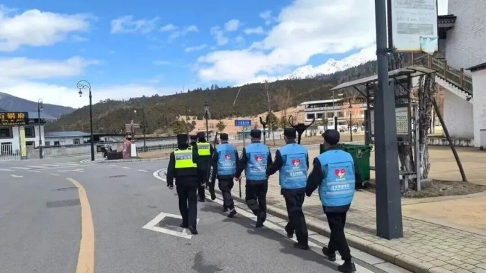去年五月,小镇里一支特别的队伍诞生了——他们叫“六联和谐管家”。石锅店老板、村委会老党员、学校老师、当地群众......200多人!结成了一支覆盖校园、交通、普法、巡防、矛调、行业六个领域的多元化群防群治队伍。从校园周边的安全巡护到318国道的交通疏导,从农牧区的法律宣传到邻里街坊的纠纷调解,鲁朗派出所把公安“独角戏”串成了警民“大合唱”。同时,鲁朗是“环喜马拉雅”国际论坛的永久举办地,鲁朗派出所全体民辅警深知,他们的形象,就是西藏乃至国家的名片。每到论坛筹备期,民辅警们就会从太阳东升熬到月亮西沉,消防安检、人员核查、矛盾化解、重点管控......鲁朗派出所把每一个环节做到极致,当国际嘉宾纷纷为鲁朗派出所专业、细致、文明的执法竖起大拇指,说着“thank you,Chinese police!”的时候,大家身上的疲惫感就立刻被身为中国人民警察的自豪感和荣誉感所替代。