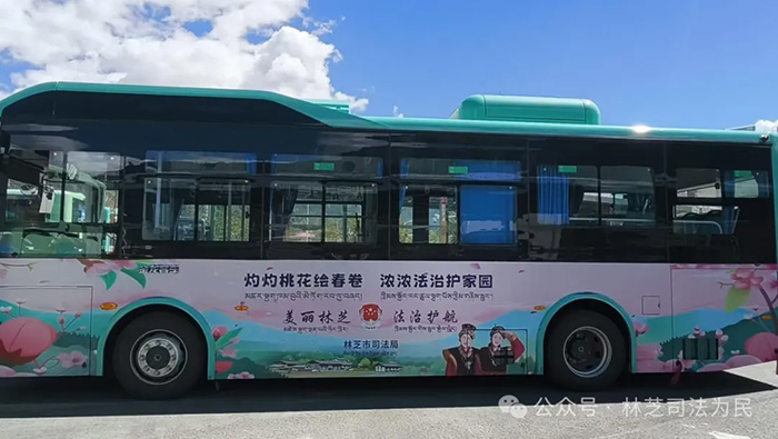 灼灼桃花绘春卷,浓浓法治护家园。为深入推进“八五”普法规划,拓展法治文化阵地建设,由林芝市司法局牵头,联合市公交公司共同打造林芝市“法治公交专线”,于近日正式投入运行,成为该市流动法治风景线。