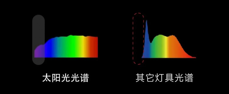 人类视觉系统在自然光环境下演化而成,因此太阳光成为我们认知色彩、判断真实的天然标准。它的光谱完整而连续,宛如一道完整的彩虹,从380nm-780nm,每个波长都有恰当的能量分布。正是这种连续性,赋予了自然界丰富而平滑的色彩过渡。