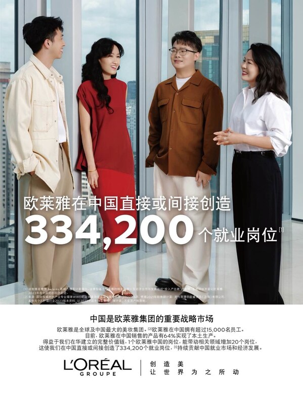 根据法国独立经济咨询公司Asterès测算,欧莱雅中国直接或间接提供就业岗位超33万个,相当于每一个欧莱雅中国的岗位,可以带动其他领域新增20个岗位,8倍于中国全行业平均就业乘数。