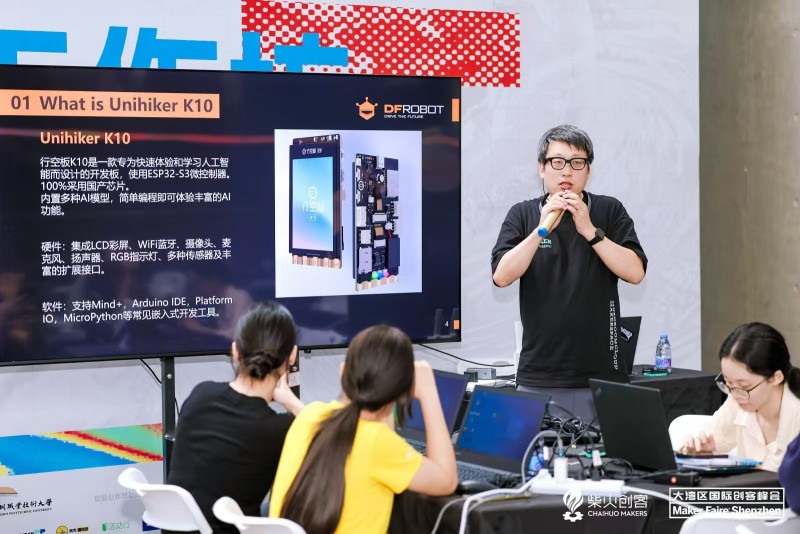 在蘑菇云B08展位,除了能亲手体验各种好玩的项目,这里更是一个轻松交流的角落。展会期间,蘑菇云创客空间的联合创始人夏青,漂移驴车社区创始人陈昊,DFRobot行空板K10产品经理叶紫彬等大咖现场坐镇,和现场maker 自然地聊起如何用AI让创作变得更简单,分享在动手实践中遇到的趣事和挑战,也一同展望AI与硬件还能碰撞出哪些新奇的火花。对许多来访的 maker 来说,这里不仅是看展,更是遇见同好、激发新点子的温暖空间。
