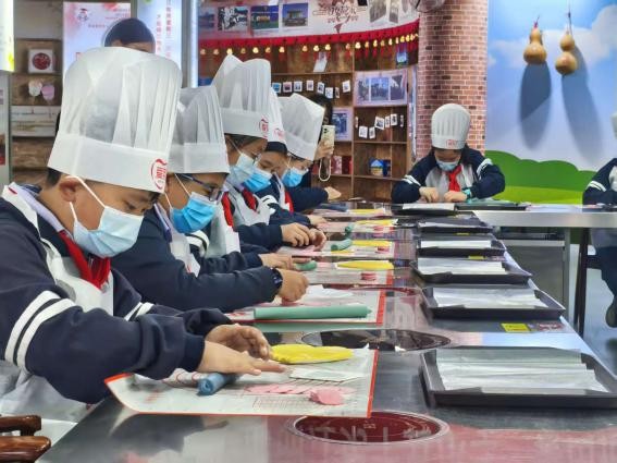 上午,在爱菊健康生活体验馆内,该校第四届厨神大赛“童厨争霸”正式开启。同学们在专业面点师傅的指导下解锁美食技能,纷纷化身小厨神,各展所长。他们将所学技能灵活运用,一碗碗筋道十足的扯面新鲜出锅;普通面团在同学们手中变成一个个呆萌的小动物;一个个承载着传统文化、寓意吉祥的大花馍也呈现在眼前。现场香气四溢,面点师傅和评委现场打分,并为本届获得厨神、银厨奖、铜厨奖的选手进行颁奖。随后,在爱菊工作人员的带领下,同学们参观了现代化粮油加工厂与粮食科普博物馆,详细了解了粮食从田间到餐桌的全过程。
