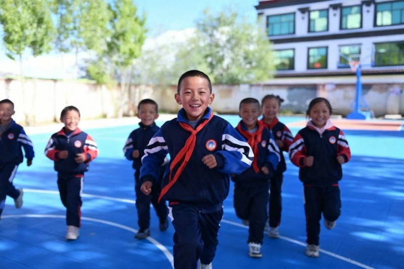 定日项目学校孩子在新运动场上体育课