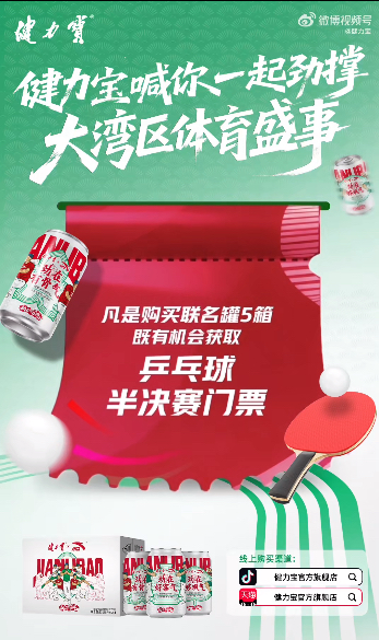 在线上,健力宝通过“大湾区体育盛事热浪来袭”主题直播,在官方抖音平台送出乒乓球赛事门票,邀请观众亲临现场感受体育热情;同时联合多家国货品牌发起“美食‘劲’技运动会”互动挑战,邀请盼盼食品、锅圈食汇、富光等国货运动员一同为运动盛事打气,传递“劲在广东,气聚山河”的体育精神,共同“打出中国气”。