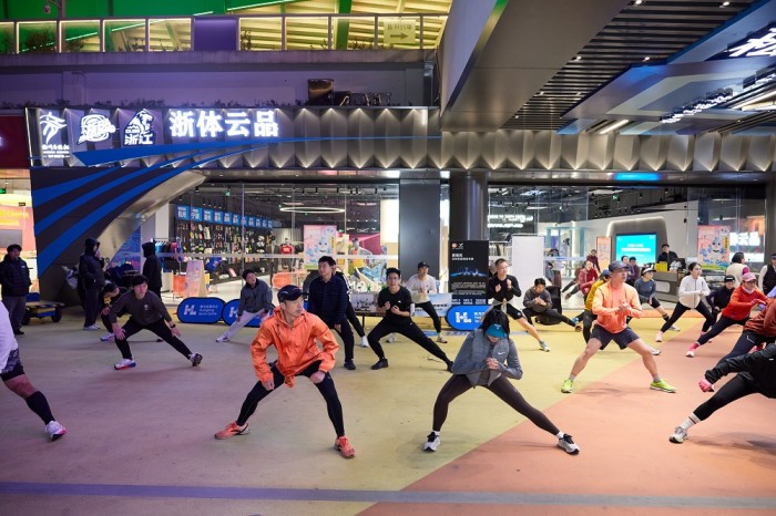 跑友们在浙体云品体验麦瑞克智能健身设备