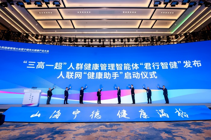 图为三高一超人群健康管理智能体“君行智健”发布与人联网“健康助手”启动仪式