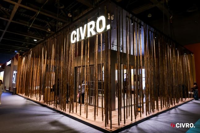 CIVRO特邀越南国宝级建筑大师武重义博士执笔,以「竹林」为设计理念,打造CIVRO展位。用朴素的天然建材——竹子,传递东方自然美学和人文精神的内核。在这其中,CIVRO和武重义博士巧妙地将多款年度新品融入竹林自然场景,为来宾打造沉浸式观展体验,吸引众多中外观众驻足体验。
