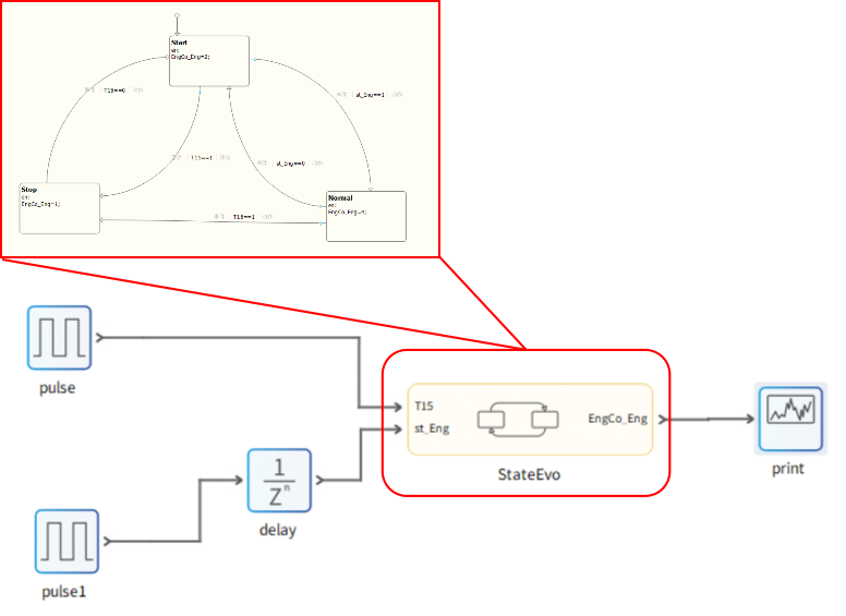 StateEvo提供了状态机建模仿真功能,支持通过定义系统状态、事件以及它们之间的转换来刻画系统的行为特性,实现对复杂系统的动态行为进行精确的建模与仿真。在传统因果建模(即信号流建模)基础上,通过状态机建模显著增强对离散事件和模态逻辑的描述能力,可精准捕捉控制系统、嵌入式软件等场景中的行为跳变,广泛适用于多个工程领域。
