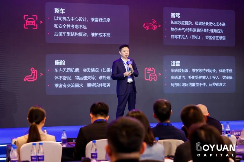 大会讨论覆盖多个前沿领域。智能出行作为中国先进制造崛起的典型代表,已成为塑造汽车产业未来的核心技术方向之一。在题为“智能驾驶后半场与Robotaxi未来”的主题演讲中,千里科技联席总裁王军指出,L3级自动驾驶的准入与责任界定将是行业关键分水岭,真正的商业化闭环必须依靠规模效应支撑。他表示,Robotaxi要实现盈利,必须打造以乘客为中心、正向设计的专用车辆,并推动自动驾驶、智能座舱与高效运营体系的深度整合。王军还表示,端边云协同的算力部署对降低车端成本、应对复杂场景至关重要,这一方向也与博原资本的投资逻辑高度契合。