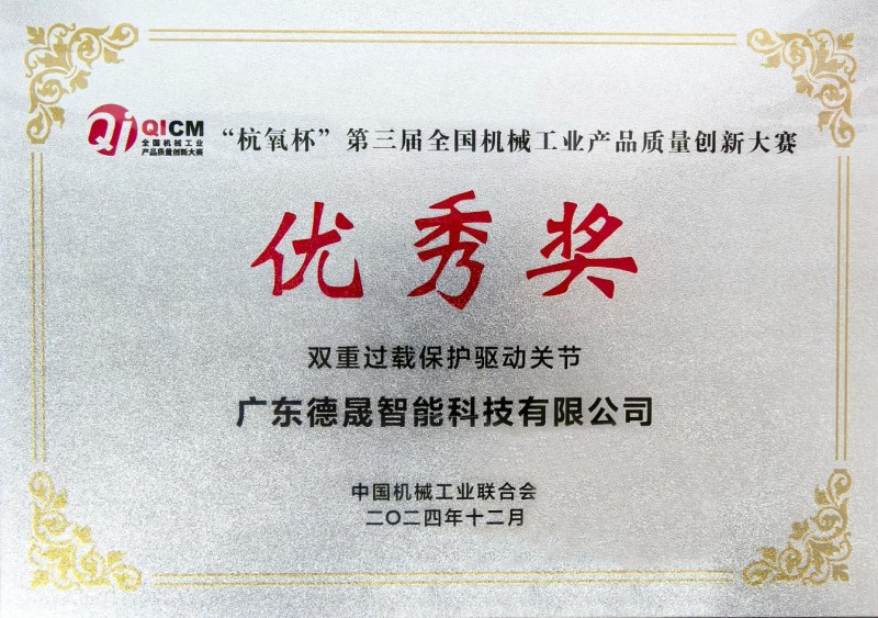 面对这一共性难题,德晟智能在北京工业大学教授/博导、教育部长江学者石照耀教授的指导下,组建高水平研发团队,围绕机器人关节的全生命周期性能保障体系开展系统性攻关。针对服务机器人关节易受冲击和过载失效的技术难题,公司联合长沙理工大学、北京工业大学、湖南科技大学等高校,通过持续投入与迭代创新,创新性地提出“机械离合+电子算法”双重过载保护技术,首创机械—电控一体化的双重保护关节架构,实现了机器人关节即时过载保护,显著提升了国产关节在复杂工况下的可靠性与耐久性,获2024年全国创新创业大赛优秀奖及“杭氧杯”第三届全国机械工业产品质量创新大赛优秀奖。