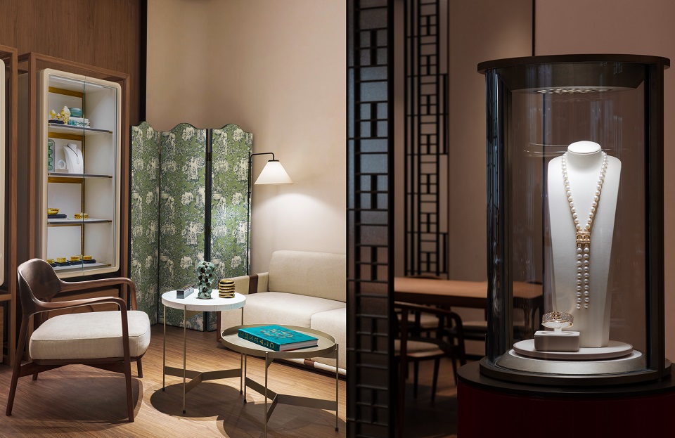 全新形象店特设贵宾区,让顾客在从容甄选珠宝的同时,也能享有兼具私密性与仪式感的专属空间。黄铜“福”纹屏风自然勾勒出过渡边界,水墨雅韵与静谧气息为空间营造清雅氛围,使顾客在尊贵儒雅的东方美学意境中,享受一场沉浸式的尊享品鉴。与此同时,周大福也将深厚的品牌故事,细腻融入消费体验的每一个触点,让顾客在购物中感受到属于品牌独有的温度与情感连接。