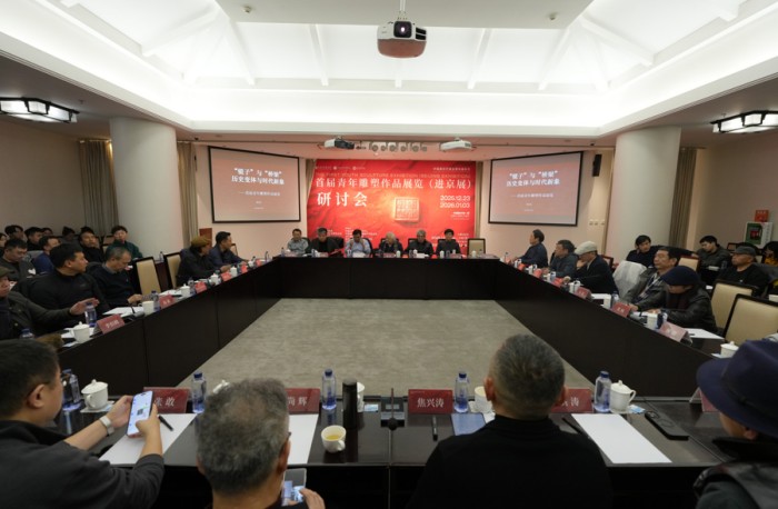 开幕式结束后,“首届青年雕塑作品展览(进京展)”研讨会顺利举行。研讨会由张建敏、南京林业大学艺术学院院长祝遵凌主持,由中国艺术学理论学会比较学专委会执行会长李倍雷评议,来自全国各地专家学者及部分参展青年艺术家参加了研讨。本次研讨会旨在深入探讨青年雕塑家在当代文化语境下的创作实践、观念探索与精神追求,并就青年雕塑如何在新时代背景下传承中华美学精神、探索本土造型语言、彰显时代气息等议题展开交流。研讨会现场学术氛围浓厚,研讨内容具有针对性和建设性,进一步深化了展览的学术内涵,为青年雕塑创作提供了理论支撑与方向启示。