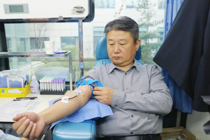 “作为一名党员,能通过捐献热血的方式为社会贡献一份力量,我感到很自豪。”市卫生健康委三级主任科员齐峰笑着说,这是他第二次参与无偿献血,他希望有更多的人积极参与到无偿献血中来,用点滴热血为生命续航。