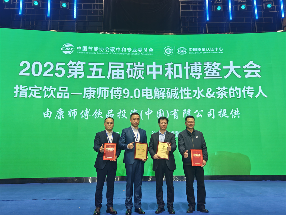 大会期间,康师傅控股中央研究所上海康识食品科技有限公司凭借全生命周期打造低碳、零碳、减碳产品,荣获“中国节能协会创新奖-节能减排科技进步奖”(碳中和领域)一等奖;康师傅饮品事业总裁邱世煌荣获“中国节能协会创新奖-节能减排科技成就奖”(碳中和领域卓越人物)。同时,康师傅旗下产品“9.0电解碱性水”和“茶的传人”荣获第五届碳中和博鳌大会指定饮品荣誉。