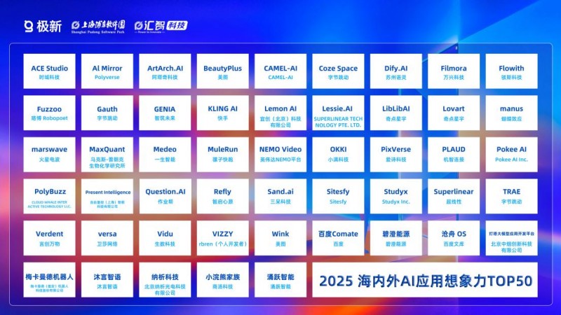 此外,极新与亚马逊云科技startups共同发起《2025海内外AI应用想象力TOP50》,本榜单不奖励规模,不崇拜流量,这里的每一个产品,都是一个被实现的“白日梦”。