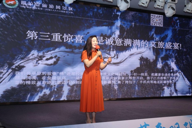 核心推介环节,新源县文旅推荐官杜红艳的分享成为全场亮点。她重点推介了“草原生态观光游”“民俗文化体验游”“冰雪运动度假游”等精品线路,并详细解读文旅招商优惠政策:包括文旅项目投资的税收减免、用地保障、财政补贴,以及对组团旅行社的人次奖励、旅游包机与专列高额补贴等,有效降低合作成本,提升合作吸引力。