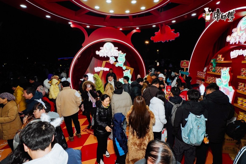 “开年好运”专属抽奖:游客通过购买产品即可获得抽奖机会,奖品融合了黄金生肖手链、拍立得相机、康师傅御品盛宴礼盒、暖心围巾手套等,吸引力十足,持续聚集现场人气。