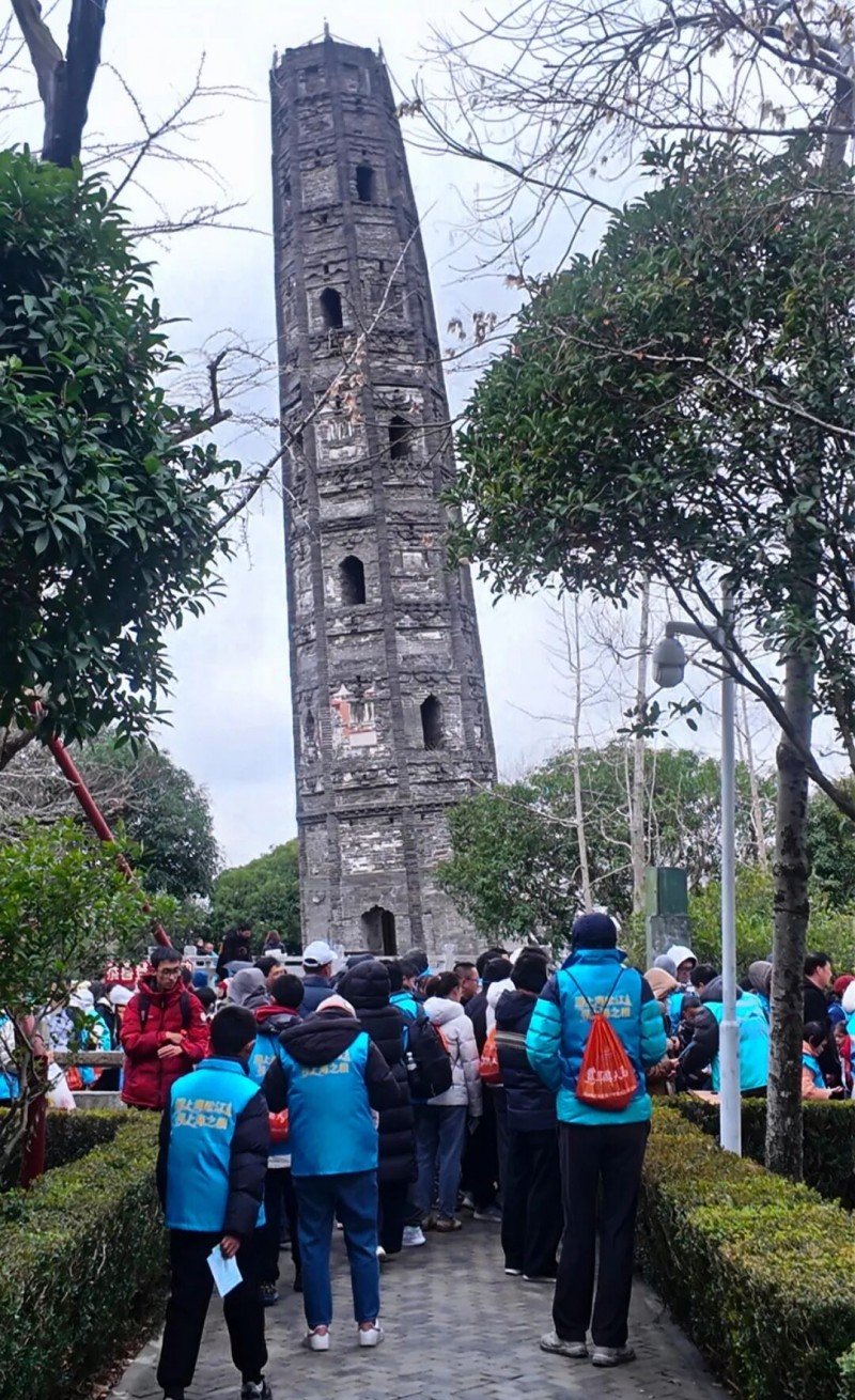 图 4集体登高成功,抵达护珠塔