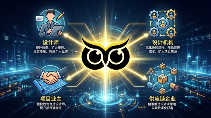 在建筑、室内、商业空间等设计行业中,长期存在着“设计需求难匹配、设计师获客难、项目协同效率低、成果转化链路断裂”等系统性问题。黑眼猫头鹰正是在这一背景下诞生的设计产业AI平台,致力于通过人工智能技术,重构空间设计工作方式与产业协同逻辑。